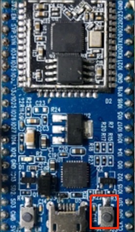 The Flash program attempts to set the PAVAS unit to the download or Flash mode. This is performed by manipulating two control lines call DTR and RTS. The timing of procedure is critical and sometimes it fails on Windows machines. The workaround is to press the Boot button on the MCU board while the Flash tool is trying to set the PAVAS unit to the flash mode. A picture of the MCU board is shown below with the location of the Boot button.