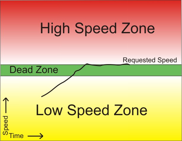 The Dead Zone is located in the higher speed of the Low Speed Zone. As the vehicle proceeds through the rally stage, the ASS effect becomes predominate and, though the Dead Zone is decreased, it is finite and so the vehicle speed cannot be precisely determined. Since the high speed region now borders on the Dead Zone, the best driving technique is increase the speed until the high frequency pips are heard and then reduce the speed to fall back into the Dead Zone. This technique can be applied to ensure the vehicle is extremely close to the desired average speed. The basis of this technique is that from the audible tones both the High Speed Zone and the Dead Zone are easily recognized.