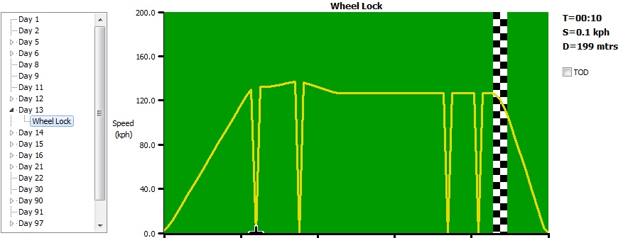 The PAVAS datalog recording is designed with the philosophy that it will be completely automatic during the running of rally during the day. This means that there is no required interaction from the crew. This approach relies on the concept that prior to a stage commencing, the vehicle will be stopped and that data is not collected while the vehicle is stopped. This implies that once the speed is non zero, the vehicle is moving and the data can be analyzed to extract to identify and extract the stage information. This process is described in the Data Processing Tab. The technique works well but if Wheel Lock occurs during the stage, then the stage identification will fail since a spurious zero speed condition will occur during the stage. This will falsely indicate the stage has ended and corrupt the analysis.